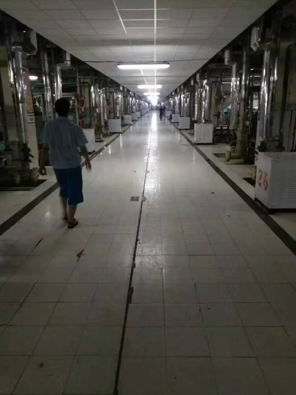 從廠房地面我們還能看出部分地方用的是瓷磚,瓷磚在安全方面沒有保障,尤其是地面遇水之后,防滑特性不好,瓷磚在受到重物沖擊時(shí)也會(huì)導(dǎo)致開裂的情況出現(xiàn)。